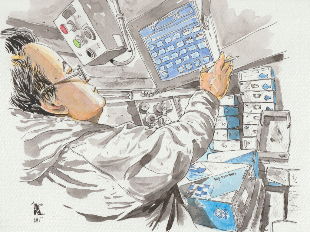 Le dessinateur Sébastien Sailly a posé son regard sur notre navire, le CAP KERSAINT, et sur le travail de nos marins.