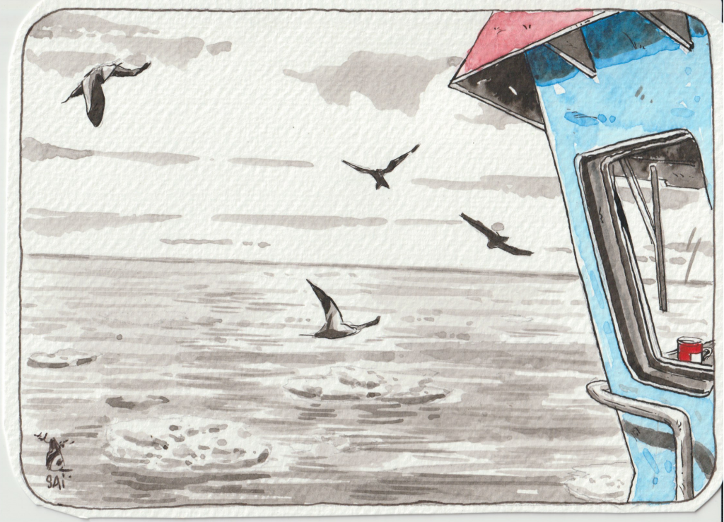 Le dessinateur Sébastien Sailly a posé son regard sur notre navire, le CAP KERSAINT, et sur le travail de nos marins.